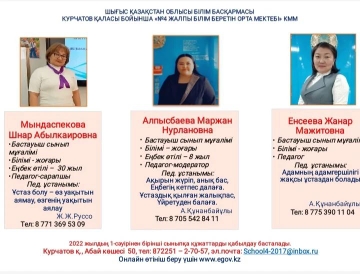 1- сыныпқа қабылдайтын ұстаздар Мындаспекова Шнар Абылкаировна, Енсеева Жанар Мажитовна, Алпысбаева Маржан Нурлановна