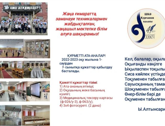 2022-2023 оқу жылына 1- сыныпқа оқушыларды қабылдаймыз!