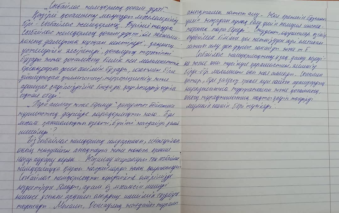 "Сыбайлас жемқорлық қоғам дерті" тақырыбында 10-сыныптар арасында эссе жазылды.