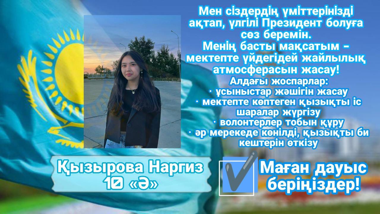 Өз таңдауыңды жаса!! 2022 жылдың қыркүйек айының 20 - сын күні мектеп парламентінің Президениттік сайлауы өтеді