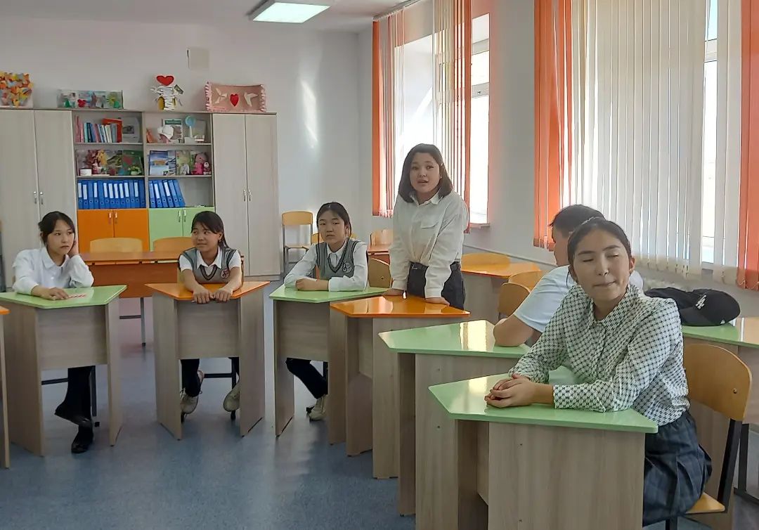 Сәуір айының 13 - күні тәлімгер Рахатова Құралай 7 "А" сынып оқушыларына "Сәулесімен сананың жігерленсің талабың " тақырыбында дөңгелек үстел өткізді.