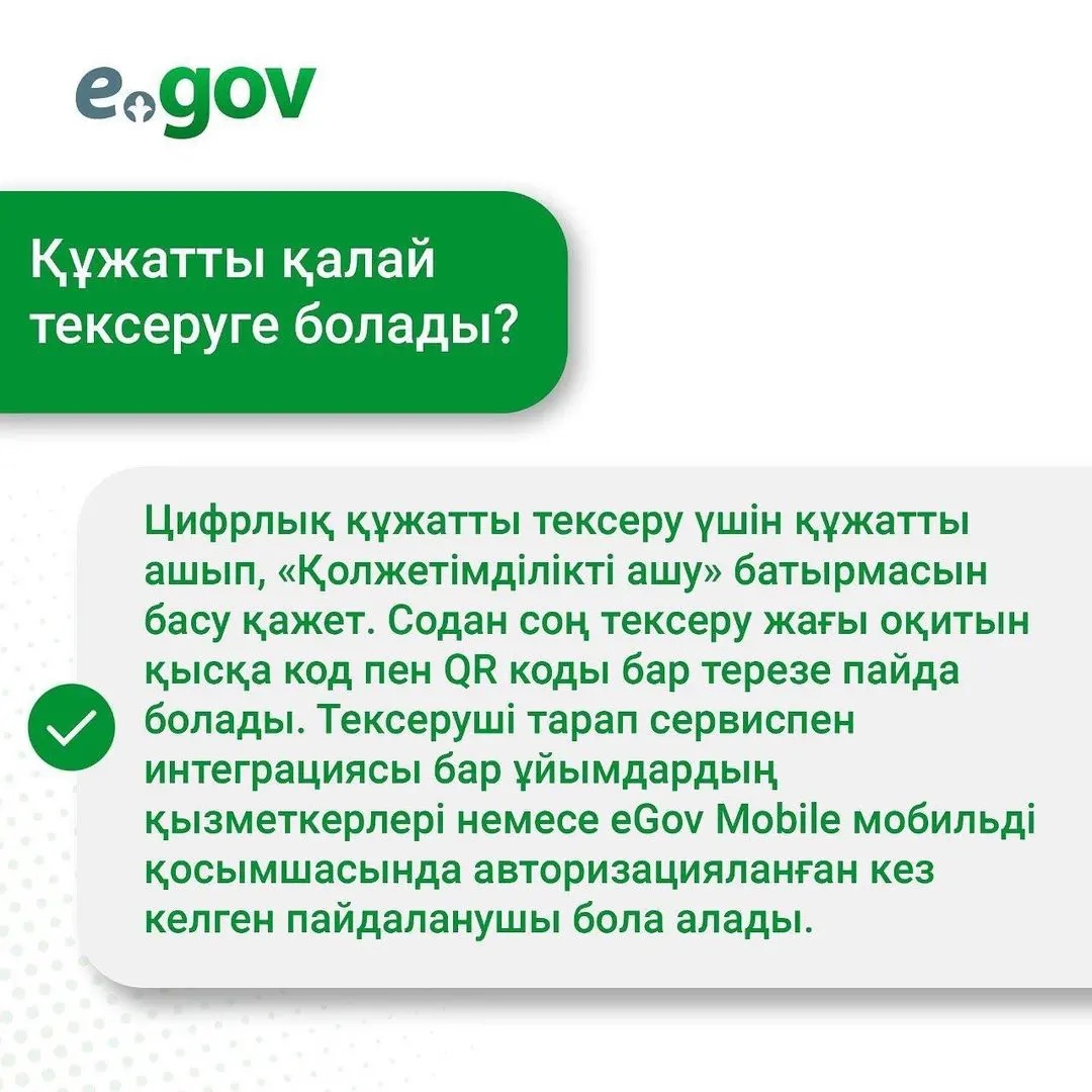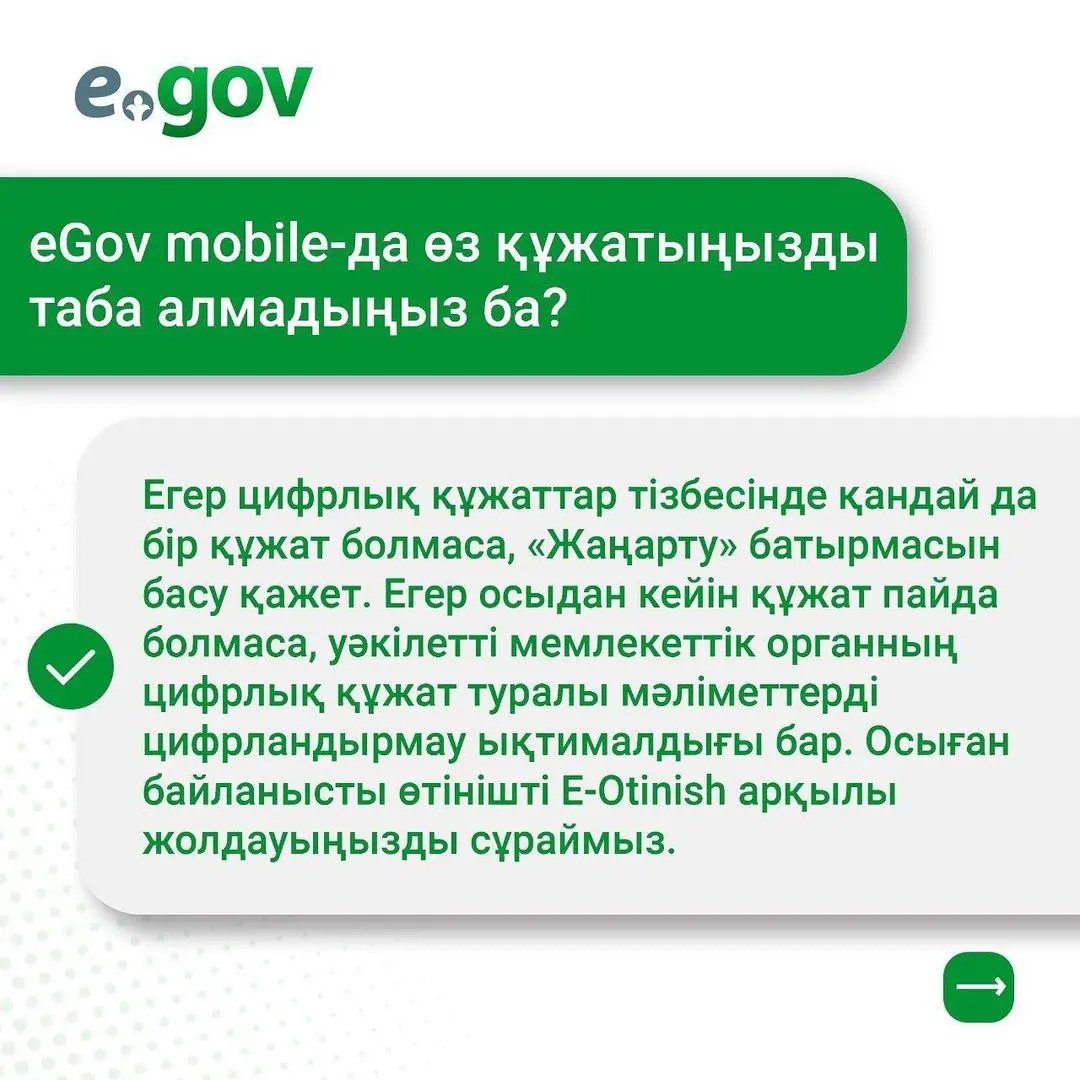 📂 Бүгінгі таңда EGOV мобильді қосымшасында "Цифрлық құжаттар" сервисінде 18 құжат қолжетімді: