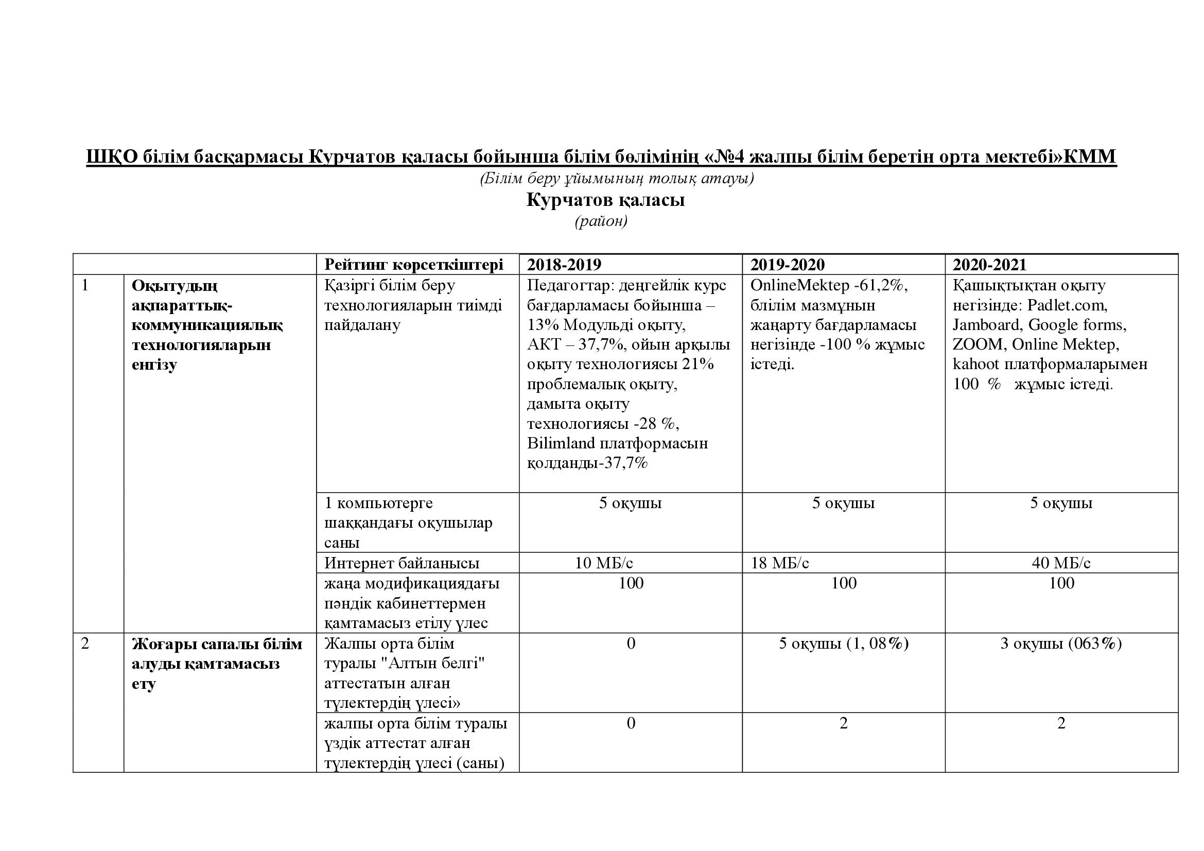 «№4 жалпы білім беретін орта мектебі» КММ бойынша педагогтардың сапалық құрамы